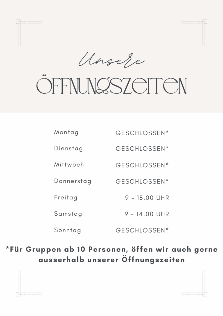 Anlässe sind auch ausserhalb der Öffnungszeiten möglich.